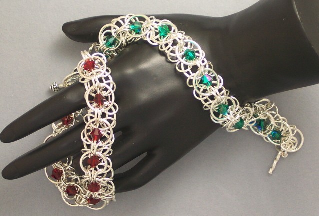 The Staggered Corduroy with Japanese Overlay Bracelet is the combination of two different yet distinct steps. You build the bottom half of the bracelet and then place the overlay on top including the crystals. It is beautiful to wear and will elicit many compliments. The bracelet feels very supple and good on the wrist. This is an advanced weave. The clasp and crystals are not included in the kit.